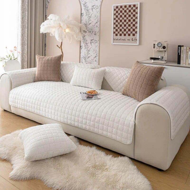 Клетчатая диванная подушка из кроличьего меха, простая однотонная утолщенная нескользящая крышка для дивана, зимняя плюшевая подушка, чехол на спинку, тканевое полотенце 70x70cm