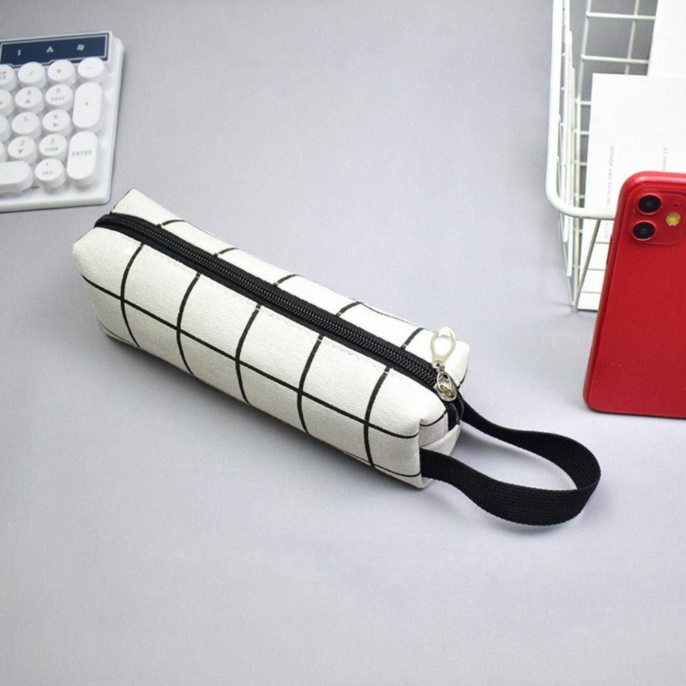 Клетчатая полосатая сумка для хранения канцелярских принадлежностей, холщовый органайзер для канцелярских принадлежностей, новая универсальная коробка для карандашей белый
