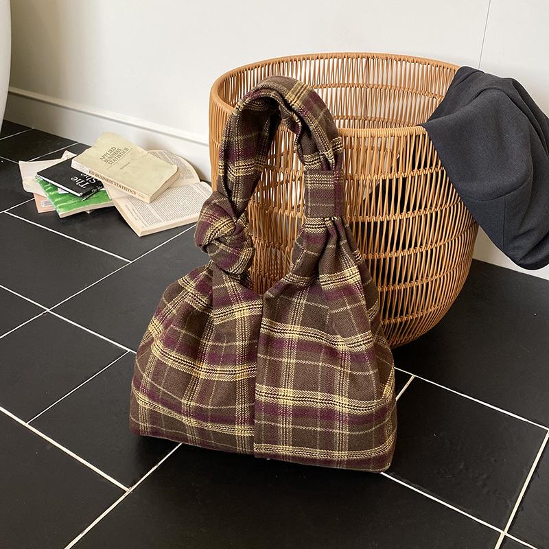 Клетчатая сумка-тоут женская новая осенне-зимняя ретро большая вместимость студенческая для учебы и работы на плечо под мышку коричневый