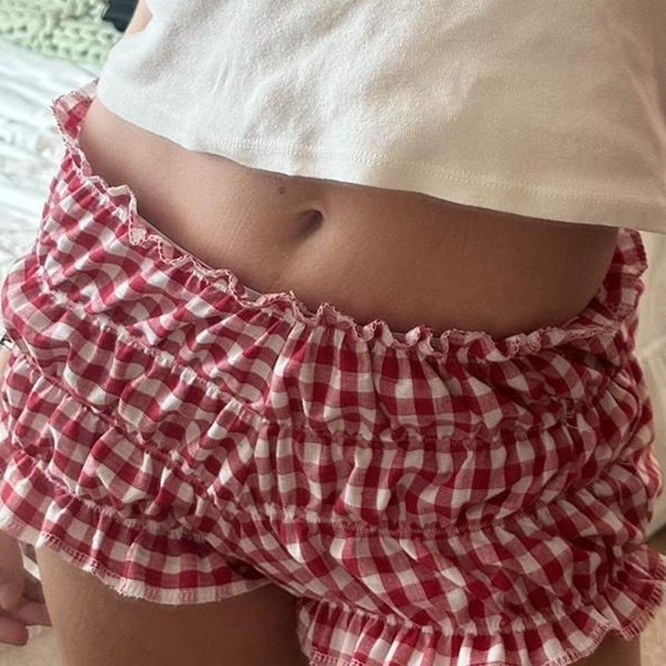 Клетчатые шорты y2k Одежда для женщин с эластичной талией и оборками Короткие шорты для милой девушки в стиле Лолиты S красный