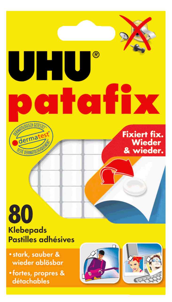 Клеящие подушечки UHU Tac Patafix предназначены для временного крепления бумаги, постеров, календарей и других нетяжелых предметов.