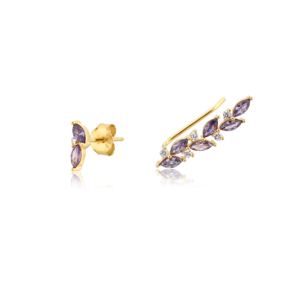 MAIKALE Fashion Gold Leaf Shape Earrings Micro Inlay Cubic Zirconia Stud Earrings for Women Jewelry Creative Gifts Brincos