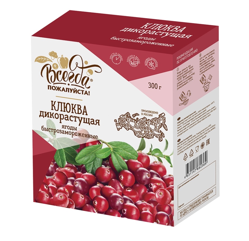 Клюква дикорастущая Всегда пожалуйста! быстрозамороженная 300 г