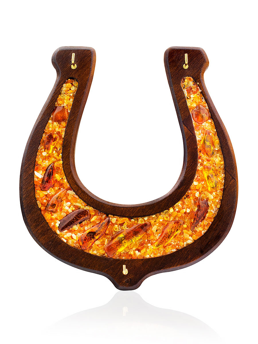 Ключница из дерева в форме подковы, украшенная натуральным янтарём, Микс