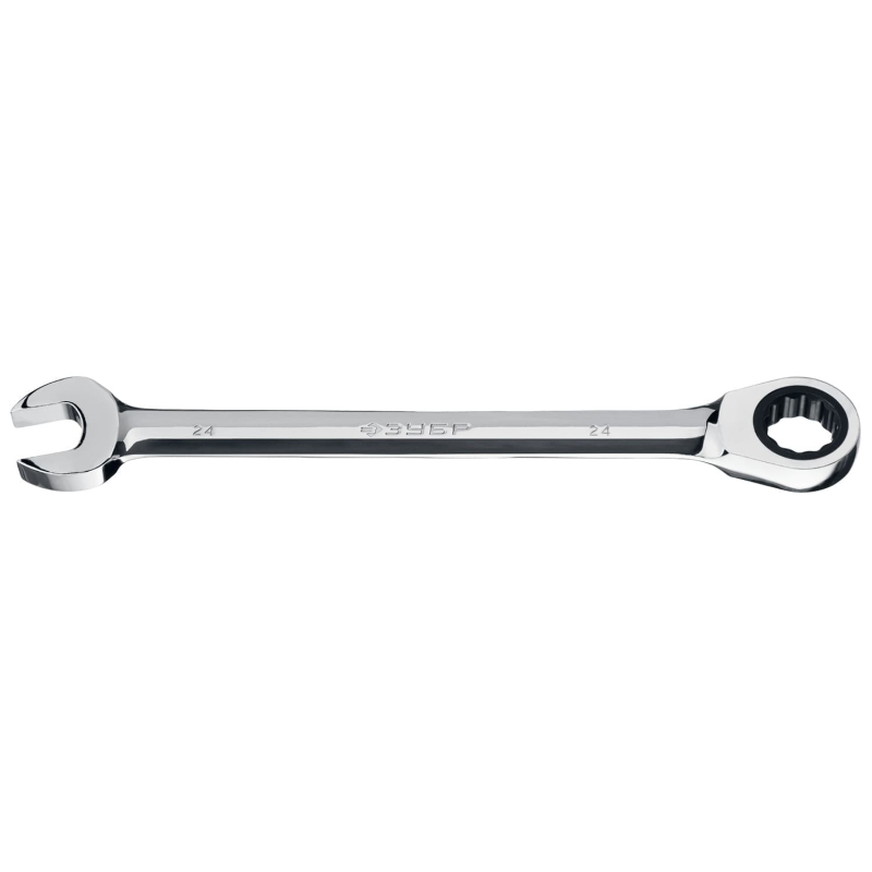 Ключ гаечный комбинированный 24x24 мм, CrV, трещотка, ЗУБР ПРОФИ (27074-24)