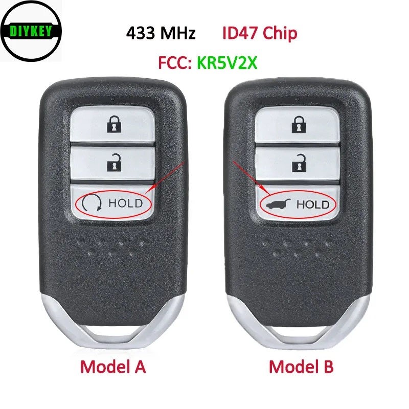 Ключ дистанционного управления DIYKEY KR5V2X с 3 кнопками, 433 МГц, чип ID47Chip Подходит для Honda CRV 2017 2018, автомобильные аксессуары