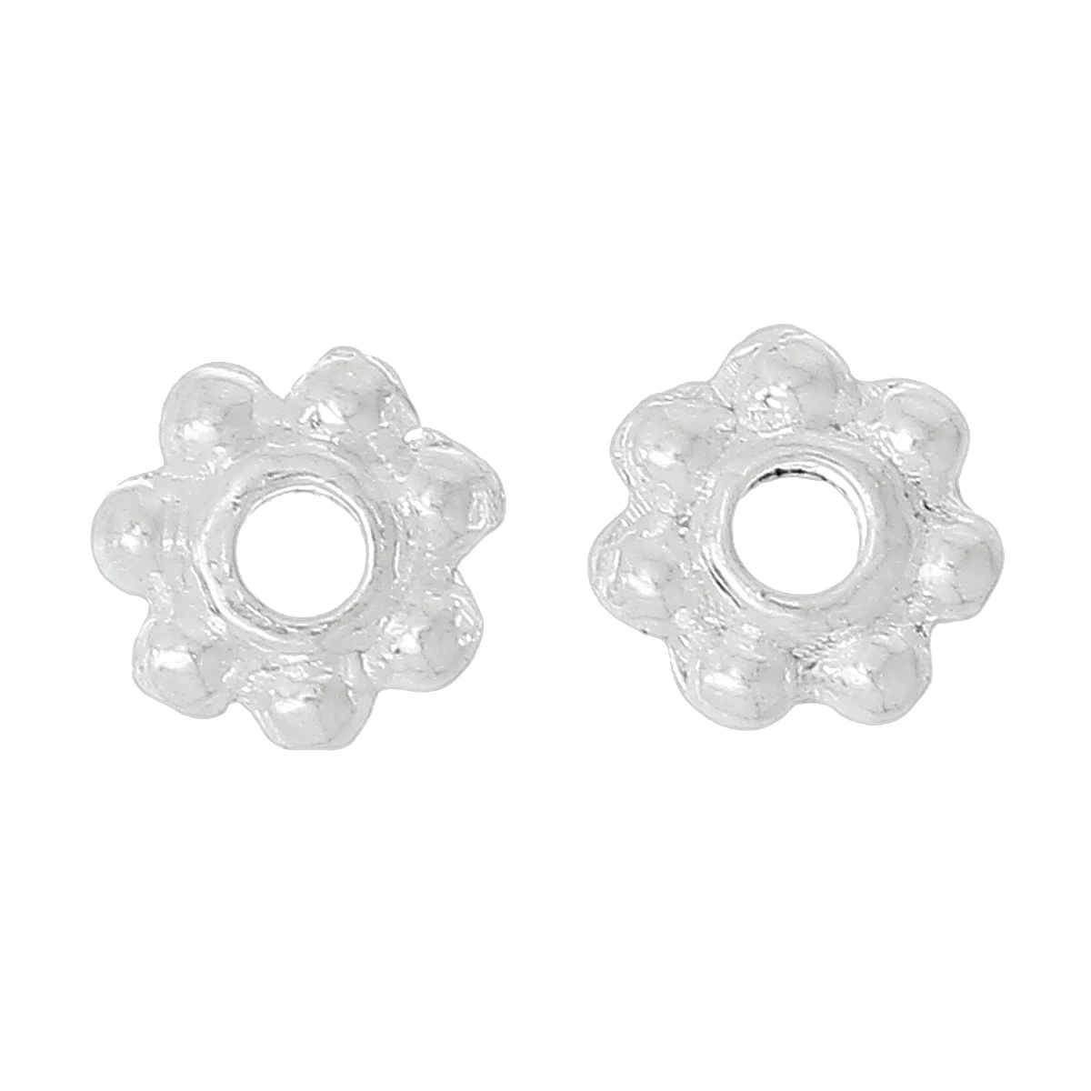 Zinc metal alloy Spacer Beads Flower Silver Plated About 4mm( 1/8") x 4mm( 1/8"), Hole:Approx 0.9mm, 150 PCs new