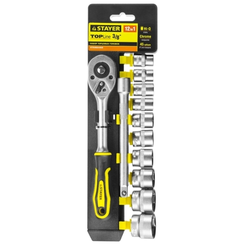 Ключ трещеточный с набором головок STAYER 27752-H12, предметов в наборе: 12 шт., 3/8" (27752-H12), 27752-H12