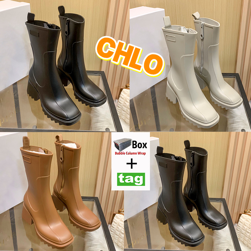 Fashion Boots Paris ChLO Half Knee Thigh-High booties Betty Rubber Rain Boot Chunky heel Thick Bottom women shoes with box Nomad Beige Black Tan woman trainers, Shoes box
