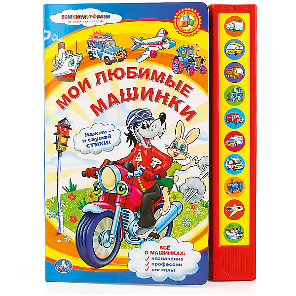 Музыкальная книжка «Мои любимые машинки» 10 звуковых кнопок с интересом расскажет юным автолюбителям о 10 служебных транспортных средствах, которые можно встретить на улицах города.