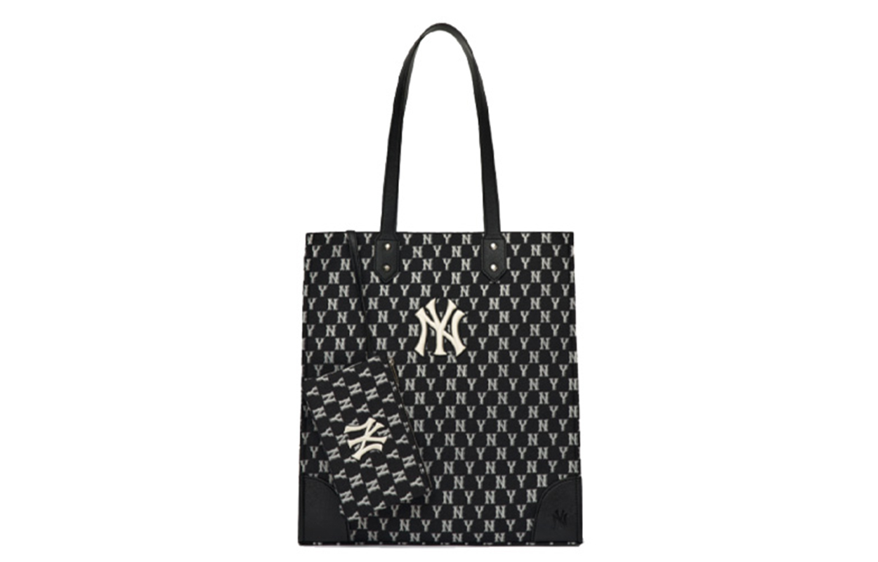 Коллекция Monogram Сумка-комбо из полиэстера Тотбэг Шоппер Плечевая сумка Клатч Большой размер Унисекс Черный MLB, Черный+Шоппер