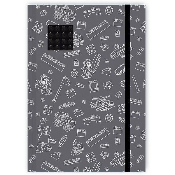 Книга для записей (96 листов, линейка) с резинкой LEGO, цвет: черный, серый, Книга для записей (96 листов, линейка) с резинкой LEGO, цвет: , серый