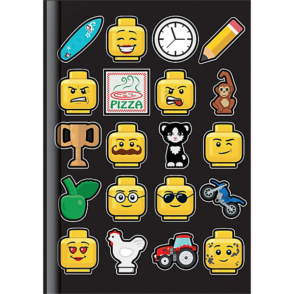 Яркий блокнот декорирован принтом в виде мордочек Лего с различными эмоциями. В нём можно вести дневник, записывать свои мысли или достижения, использовать как черновик в школе и много другое.