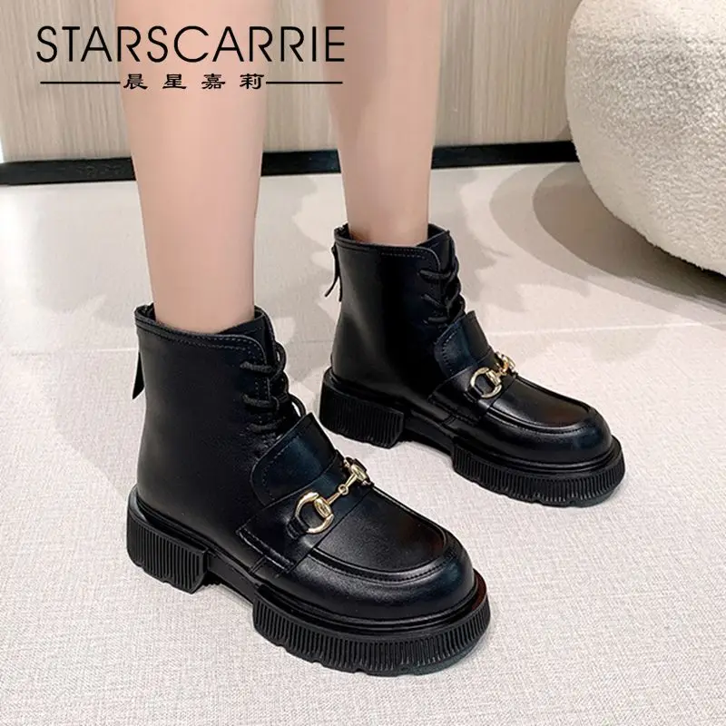 Short boots female British style thin boots wild 2021 spring and autumn single boots metal buckle casual flat women's boots