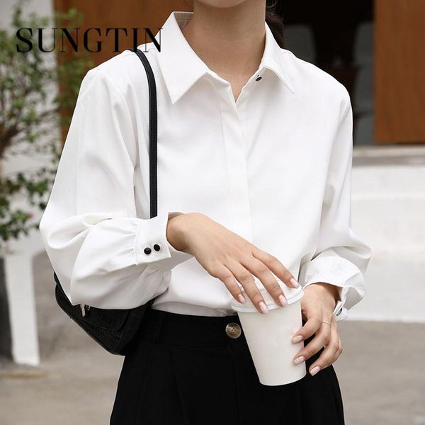 women's blouses & shirts sungtin soft office lady white shirt for women loose lapel turn-down collar long sleeve korean fashion woman