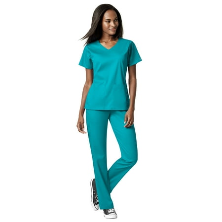 WonderWink Scrubs Set PRO Women s 4 Pocket Wrap Top & Knit Waist Straight Leg Pant
