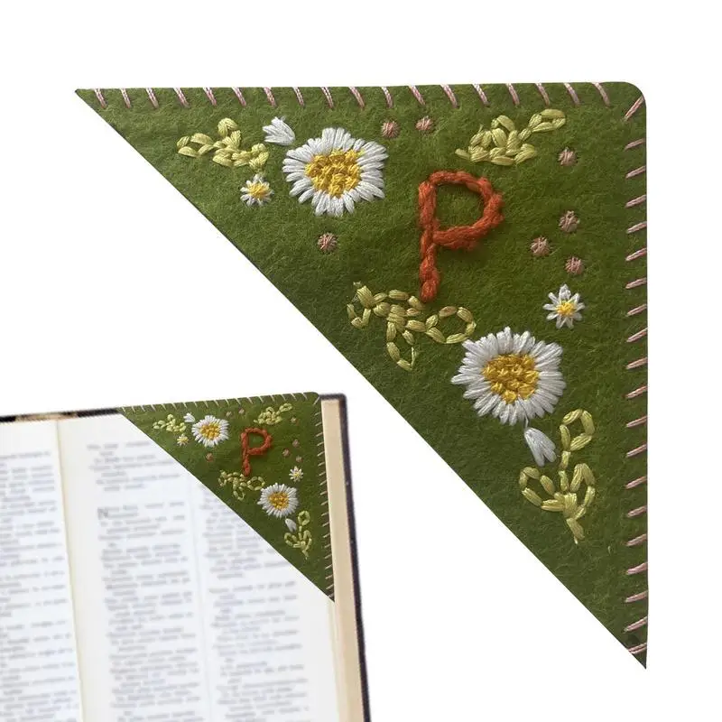 Книжная Закладка ручной работы, войлочные треугольные маркеры для страниц, милый цветок, вышитые вручную буквы, закладки, украшение для книг
