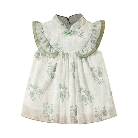 Dresses for Girl Girls Toddler Summer Casual Sleeveless Prints Dress Dance Party Dresses Holiday Beach Clothes (Green 12-18 Months)