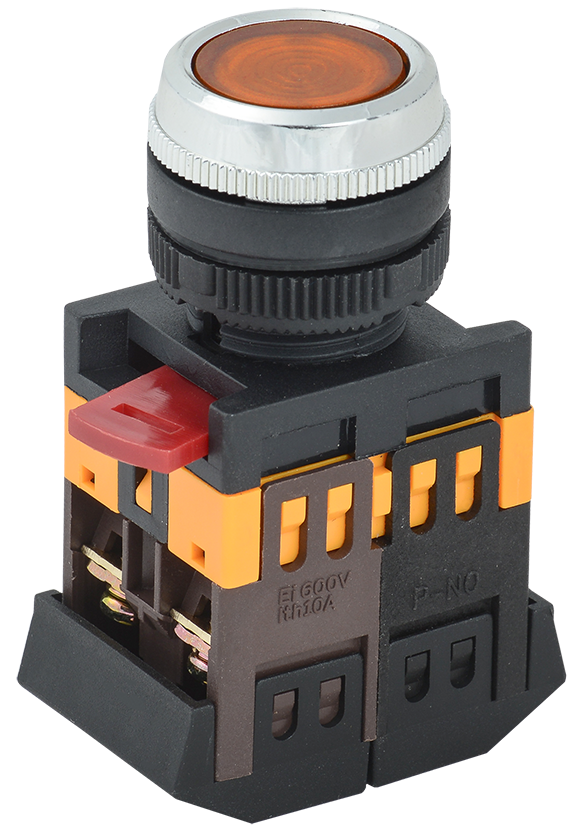 Кнопка плоская без фиксации 22 мм, 1NO 1NC, желтый, IEK ABLFS-22 (BBT30-ABLFS-K05), ABLFS-22