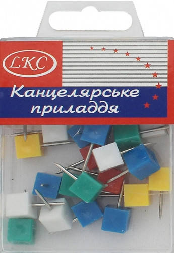 Кнопки канцелярские цветные "Кубик" 30 шт в упаковке продается оптом с доставкой по Украине