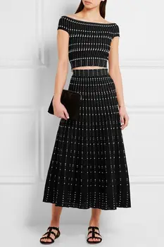 Polka Dot Draped 2 Two Pieces Bandage Sets Women Bodycon Dress Party New Designer Slash Neck Off Shoulder Short Crop Top Club