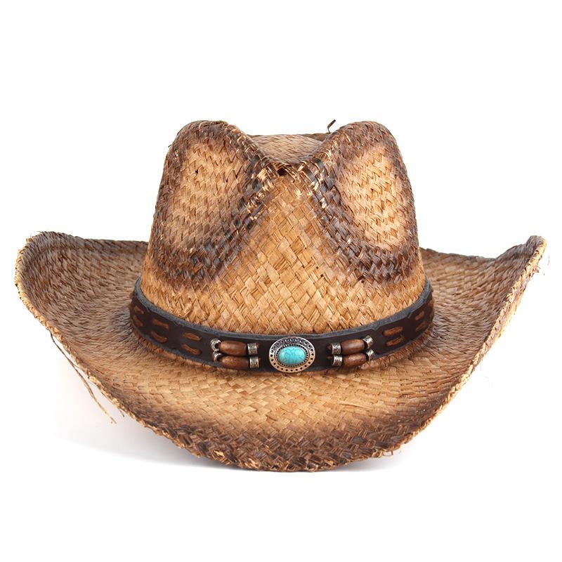 Ковбойская шляпа в стиле вестерн, летняя мужская и женская соломенная пляжная кепка из рафии ручной работы, модная шляпа от солнца с широкими полями в стиле пастушки, сомбреро Hombre 57-58CM
