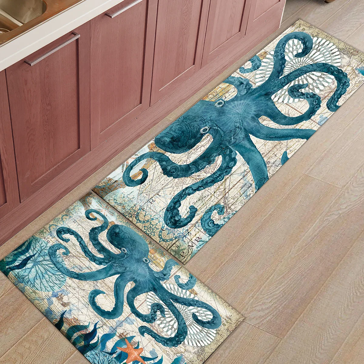 Ковер «Осьминог» для кухни в современном морском стиле, Декоративный Напольный коврик для дома, ванной, гостиной, противоскользящий длинны...