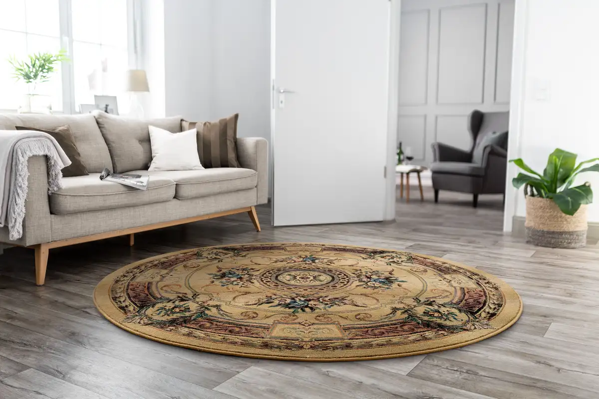 Ковер THEKO "Gabiro 856", круглый, короткий ворс, восточный вид, идеально подходит для гостиной и спальни Ø 150 см, бежевый