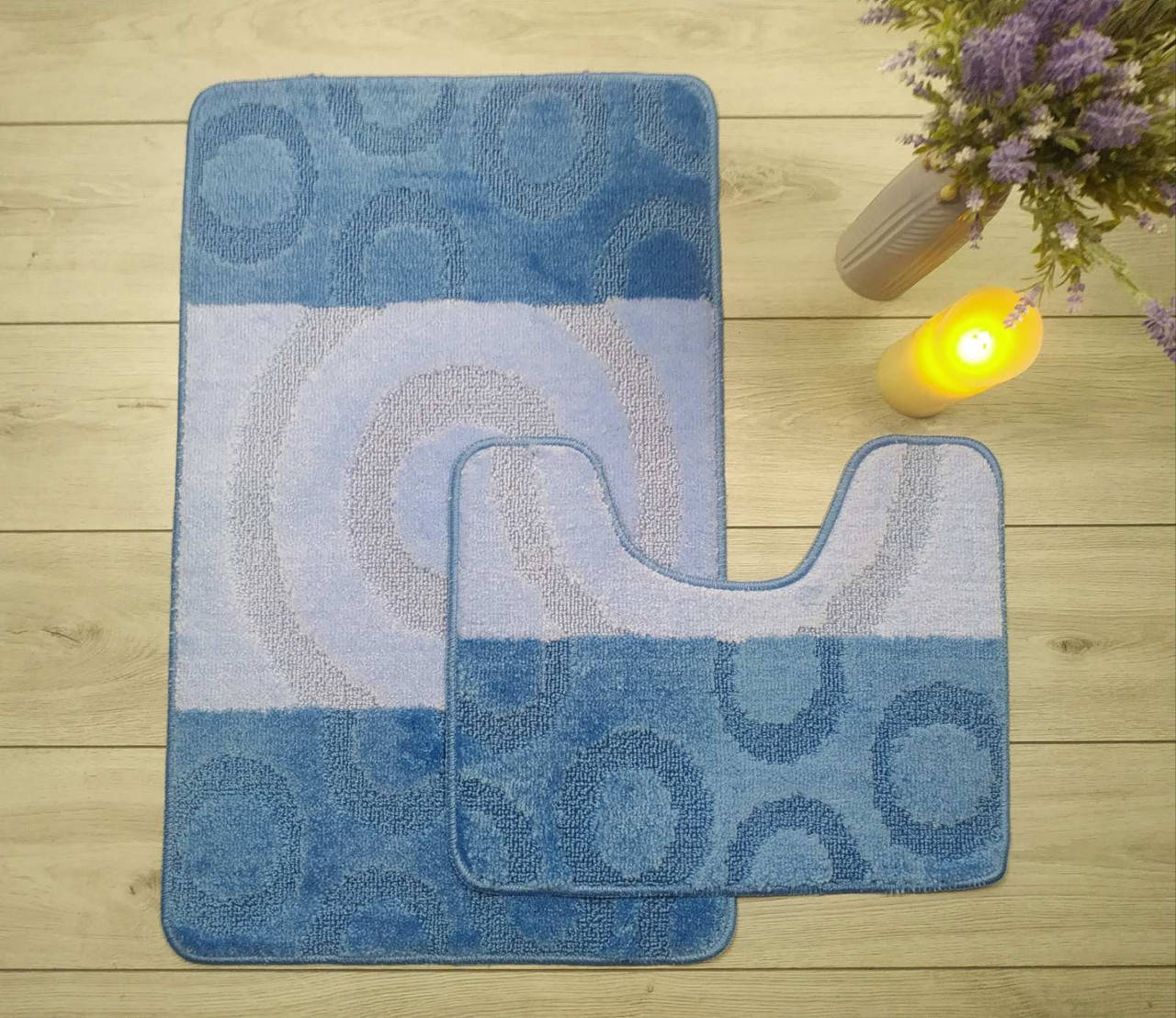Коврики ТМ Banyolin Silver 2-ка (60х100см, 50х60см) цвет-голубой "круги" SLV03_blue