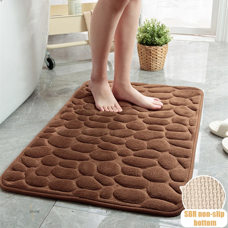 Коврики для ванной, нескользящий тисненый коврик из булыжника, впитывающий пол для ванной комнаты из пены с эффектом памяти, моющийся насте...