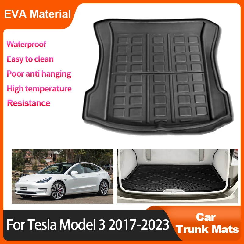 Коврики для заднего багажника автомобиля Tesla Model 3 2023 2022 2021 2020 2019 2018 2017, водонепроницаемые защитные противоскользящие аксессуары для хранения