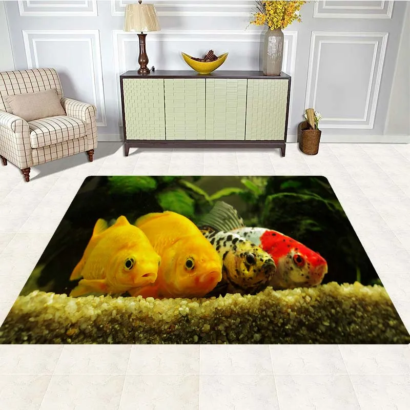Коврики с изображением золотой рыбы, большой ковер для гостиной, спальни, домашнего декора, коврик для рыбы, напольный коврик, мягкие Противоскользящие коврики, коврики
