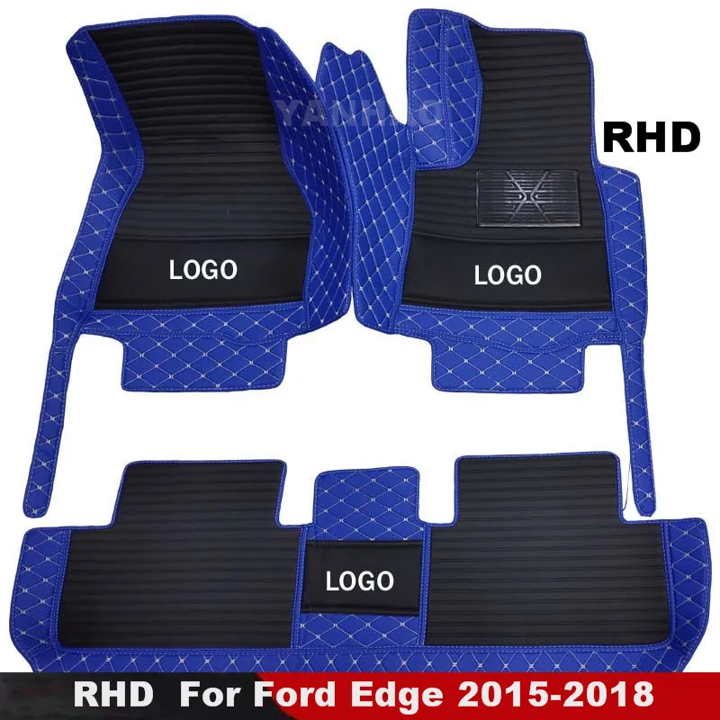 Коврики RHD для Ford Edge 2018 2017 2016 2015, автомобильные коврики из искусственной кожи, водонепроницаемые пользовательские аксессуары для автомобиль...