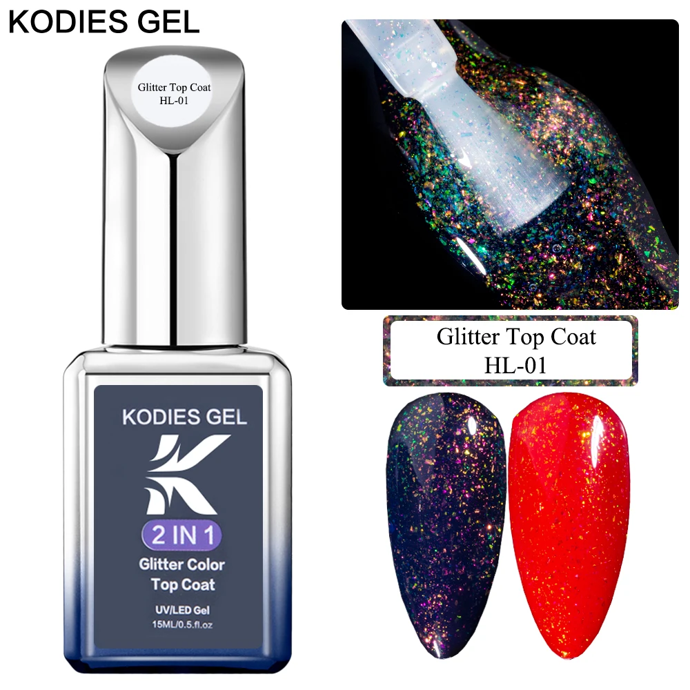 KODIES GEL NEW Aurora Top Coat Glitter Gel Nail Polish UV Semi Permanent Varnish Manicure Diamond Sparkle Top Coat No Wipe