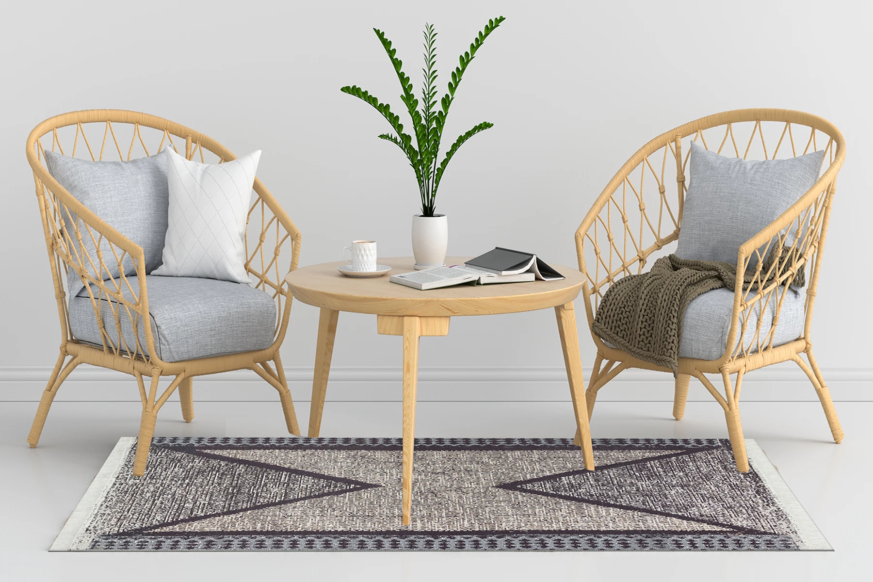 Коврик двухсторонний Плетеный с геометрическим рисунком, 100% хлопок, коричневый, серый