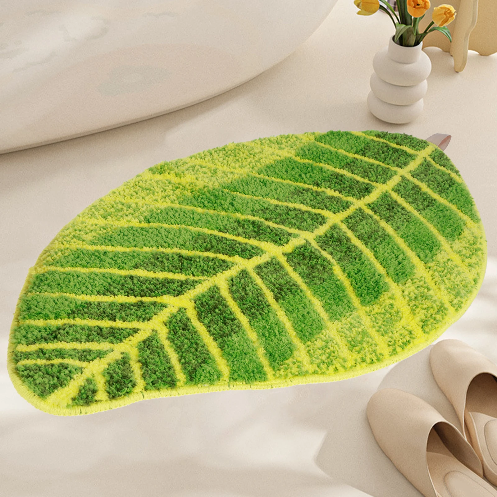 Коврик для ванной с зелеными листьями, 17,72 × 29,53 дюйма, нескользящий коврик для ванной в форме листьев с подкладкой из ТПР, супервпитывающий мягкий домашний коврик для ванной