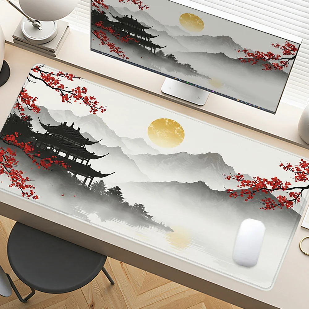 Коврик для мыши «Гра и Луна», большие настольные аксессуары, настольный коврик, резиновая основа с прошитыми краями, коврик для мыши, нескользящий настольный коврик для офиса
