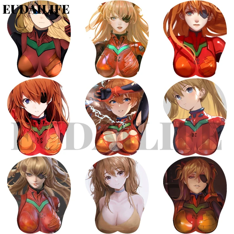 Коврик для мыши с 3d-рисунком аниме Asuka Shikinami EVA Langley, силиконовый мягкий коврик для мыши Oppai для работы в офисе