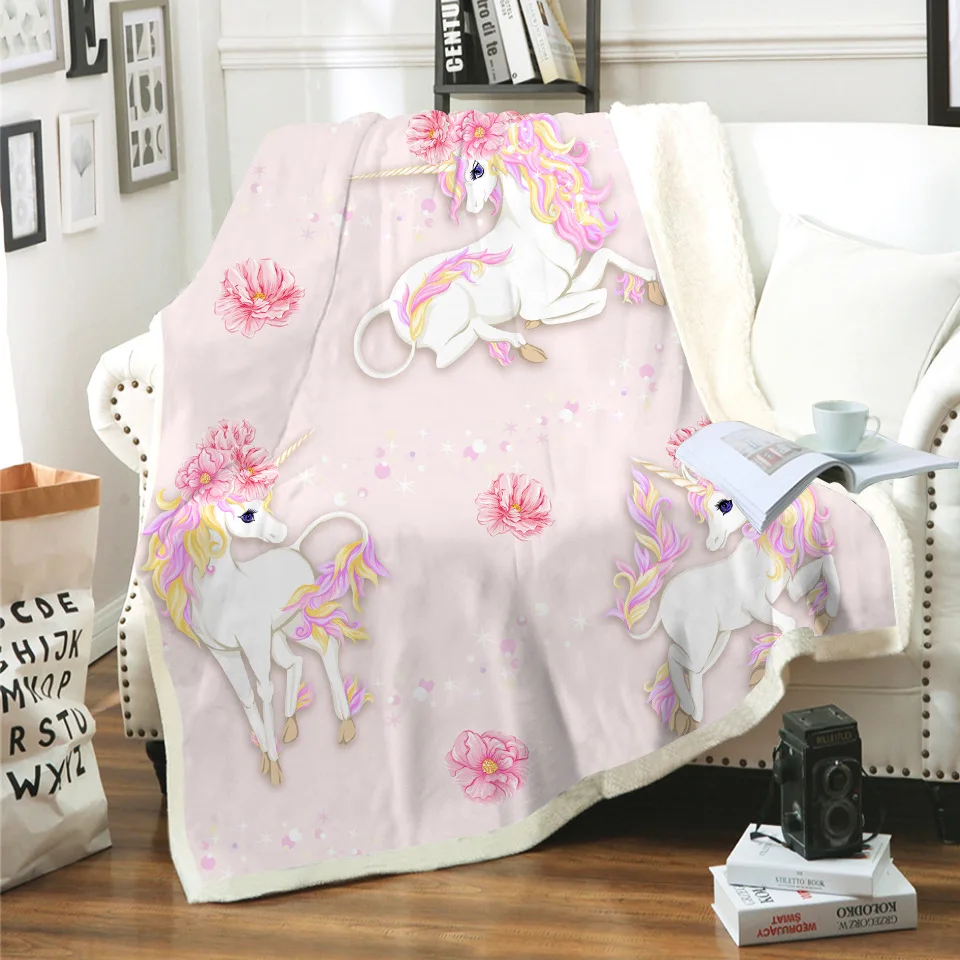 Одеяло в виде единорога, лошади с забавными персонажами, одеяло с 3D принтом шерпы на кровати, домашний текстиль, сказочный стиль 9