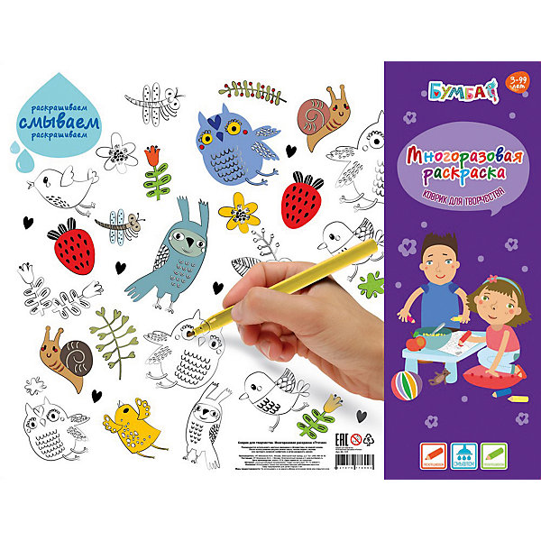 Коврик-раскраска Бумба "Птички", многоразовый, Белый