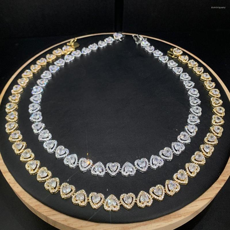 Chains Heart Tennis Chain Choker Necklace Micro Paved Iced Out Bling Cubic Zirconia Luxury Shaped Lovely Charm Short