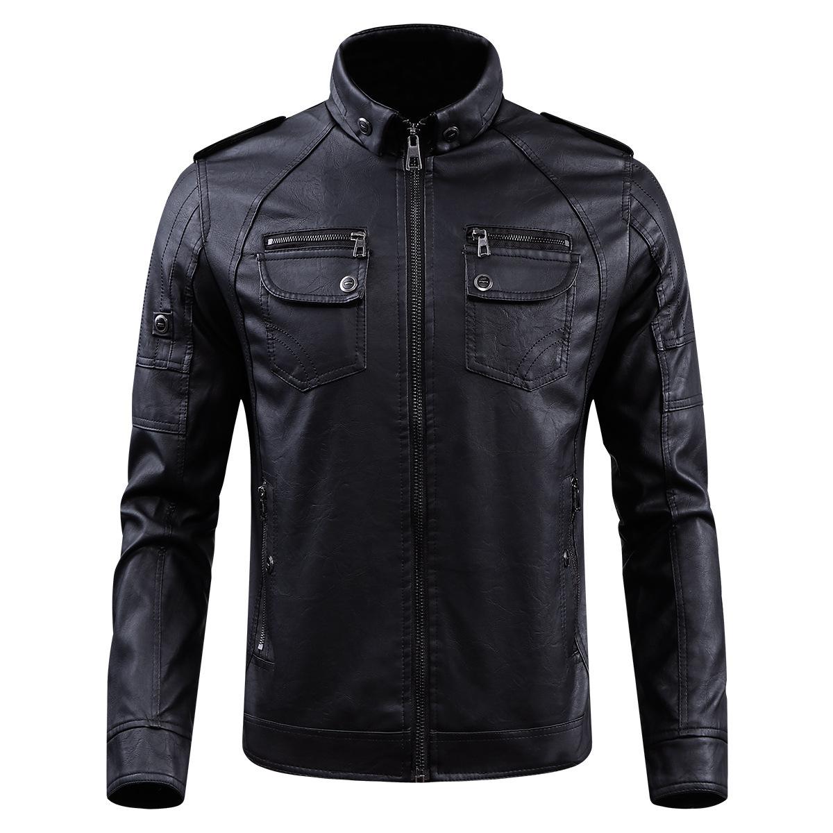 Кожаная куртка Мужская кожаная куртка Плюс Бархатная стираная кожаная куртка для мотоцикла XXXL