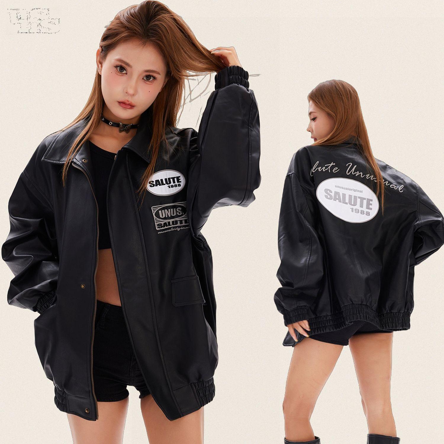 Кожаная куртка в стиле ретро-мотоцикла, бейсбольная форма, свободная куртка пилота нейтрального цвета на осень M чёрный