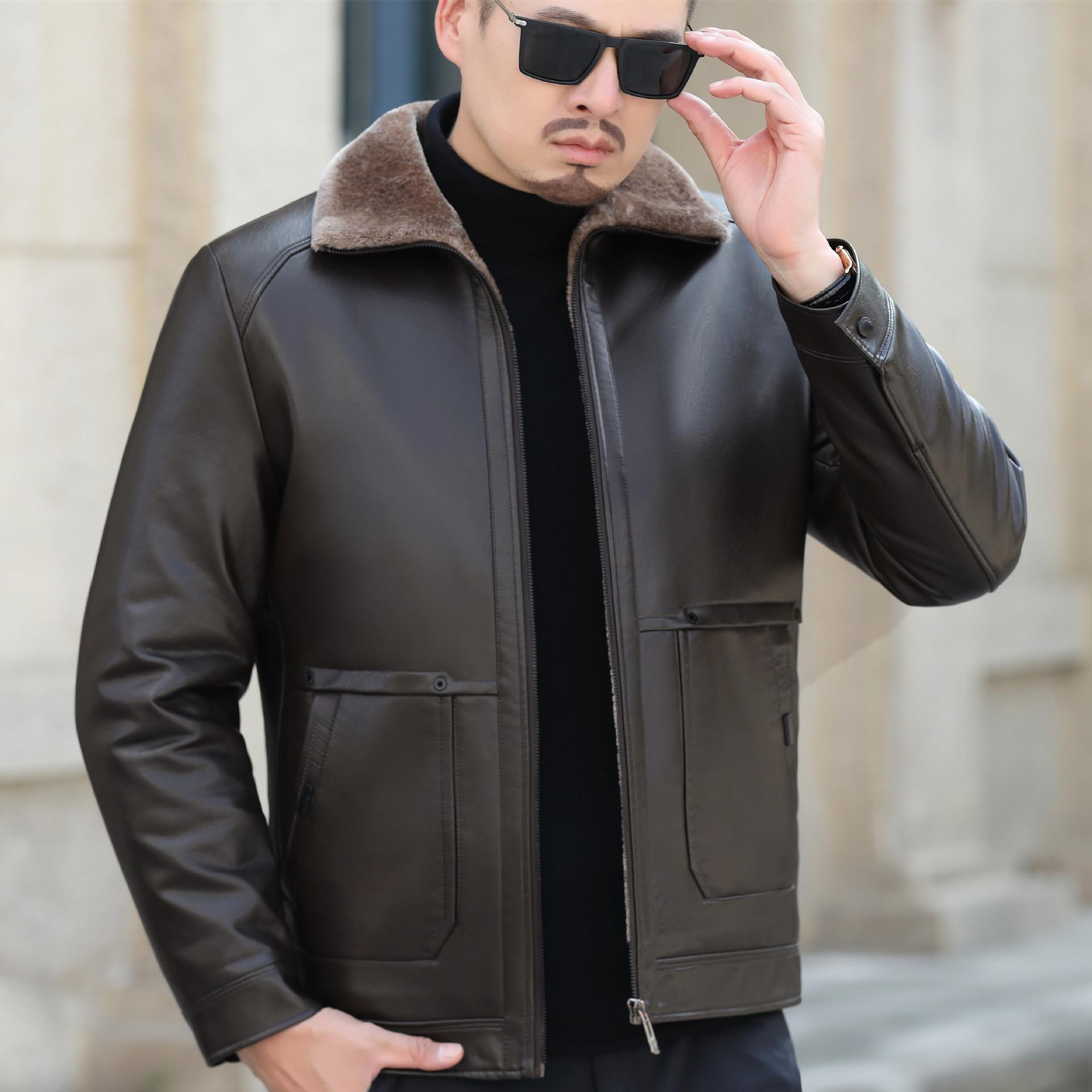 Кожаная куртка мужская из натуральной кожи на меху цельная мужская мужская среднего возраста зимняя новая повседневная утолщенная куртка из овчины мужская куртка 7XL