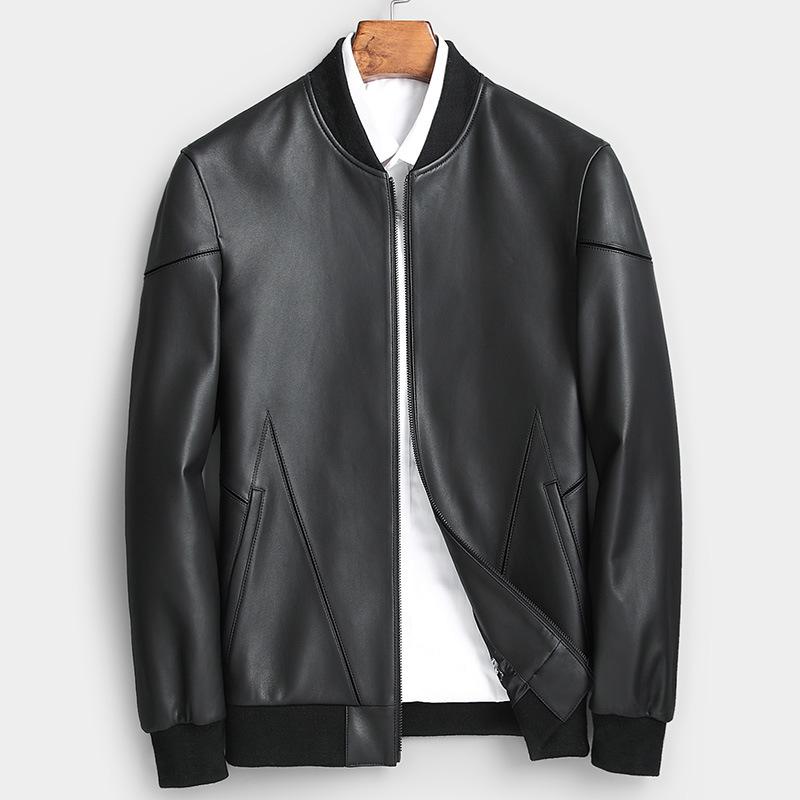 Кожаная куртка, мужская короткая куртка из натуральной кожи из овчины с воротником-стойкой, весенне-осенняя облегающая повседневная кожаная куртка 5XL