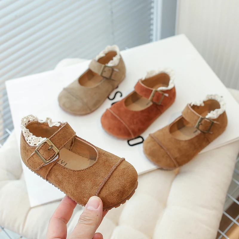 Кожаная обувь для девочек, весна-осень 2023, новая кружевная милая детская повседневная обувь в стиле ретро, нескользящая детская обувь с неглубоким носком, размер 21–34
