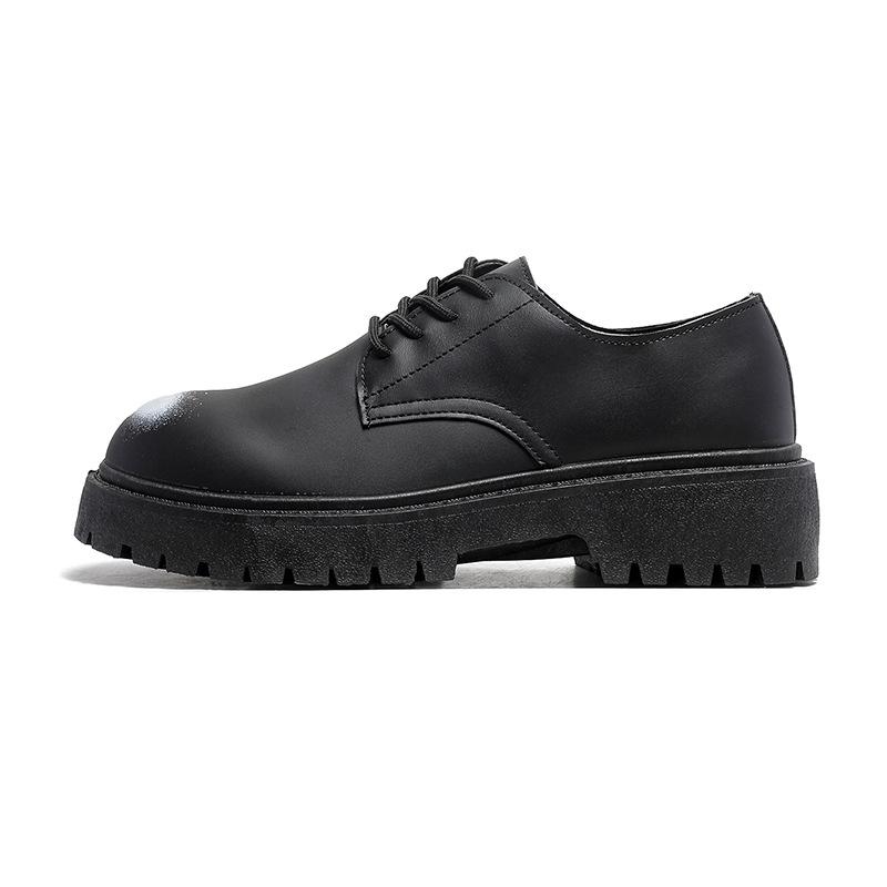 Кожаная обувь мужская осенняя дышащая модная обувь кожаная универсальная модный бренд британская платформа повседневная черная нескользящая с большим носком кожаная обувь 39 чёрный