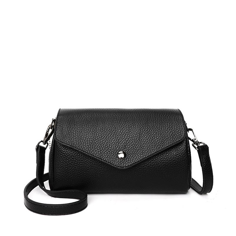 Кожаная однотонная простая текстура в иностранном стиле, сумка-мессенджер на плечо, квадратная, подходит для девочек, тренд ретро чёрный