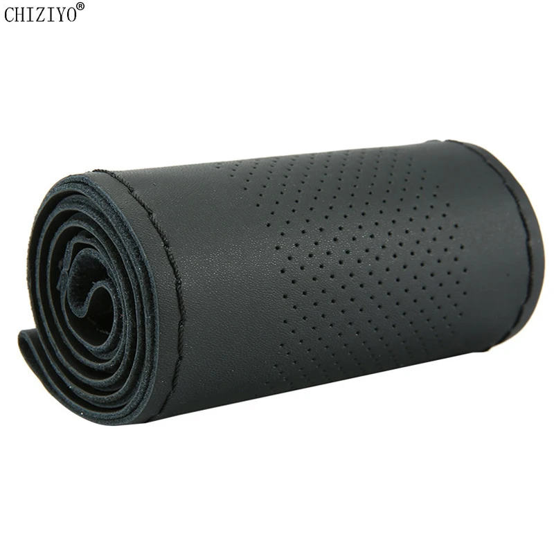 38 см натуральный кожаный чехол на руль автомобиля, мягкий дышащий чехол для ручного шитья своими руками с иглой и нитью