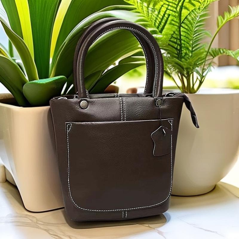 Кожаная сумка женская сумка простая мягкая воловья кожа ретро сумка-ведро универсальная сумка через плечо темно-коричневого